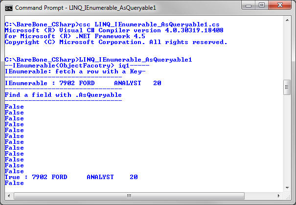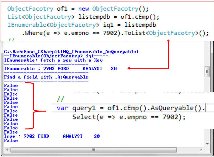 Please also review this example : LINQ_IEnumerable_AsEnumerable1.cs
