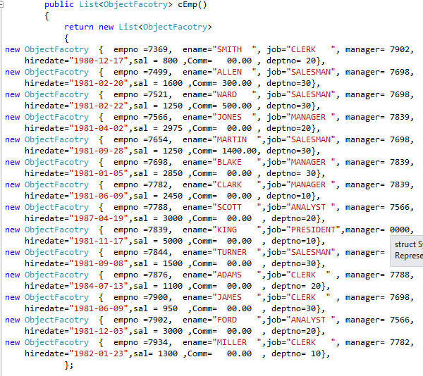 - List<ObjectFacotry> listempdb = of1.cEmp();