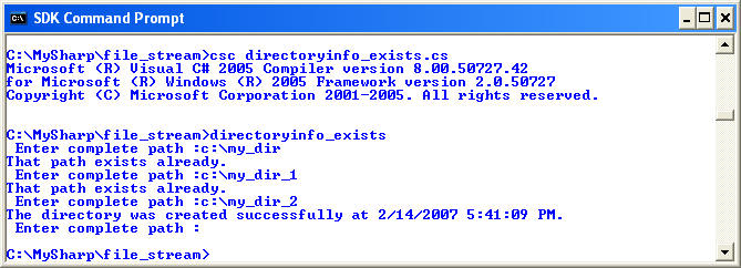 { Console.WriteLine("That path exists already."); return; } //end of if