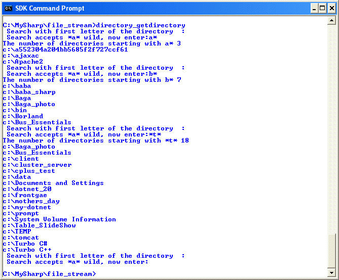 Console.WriteLine("The number of directories starting with " + s + " "+