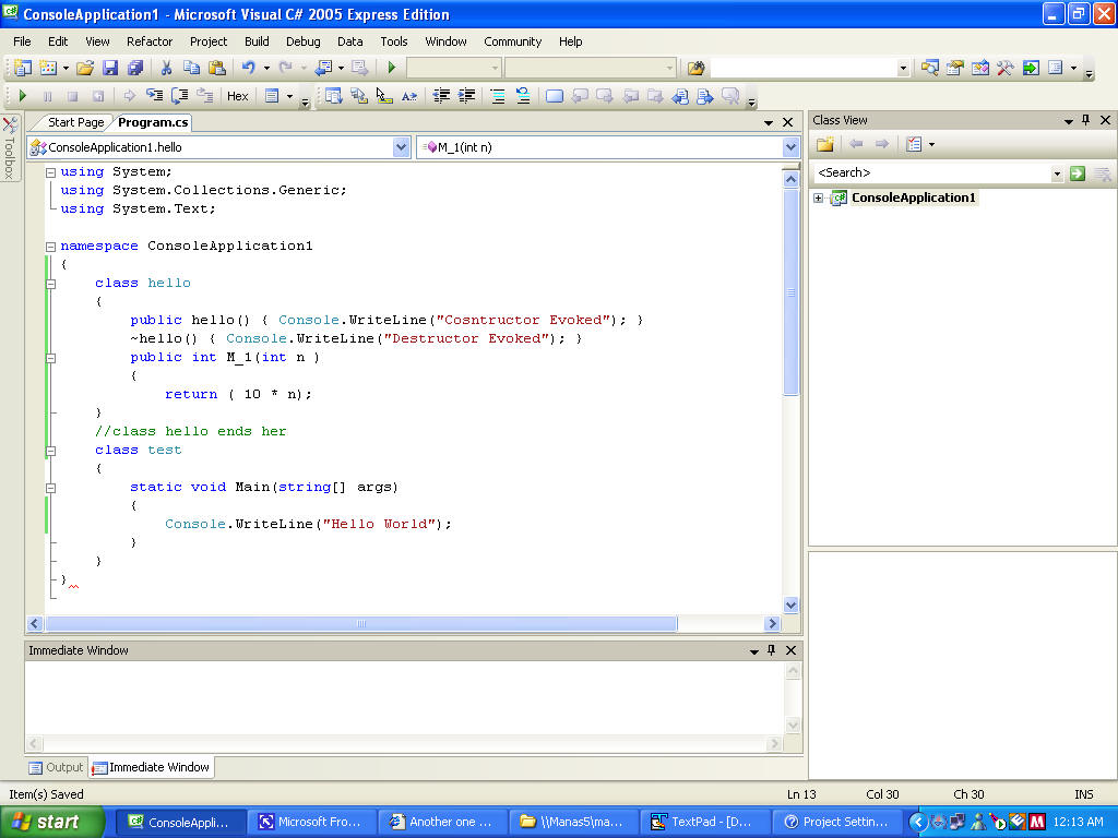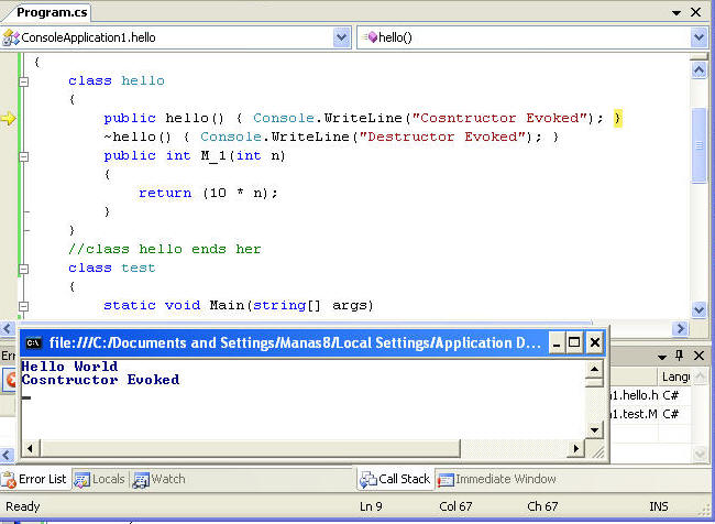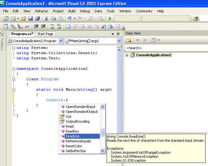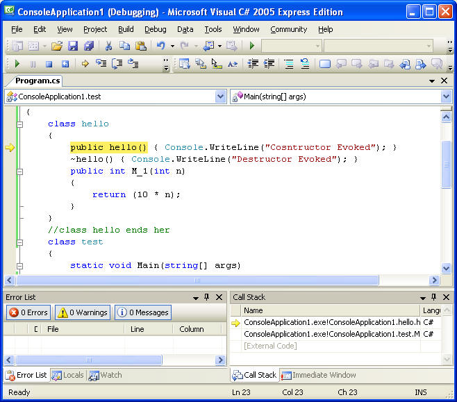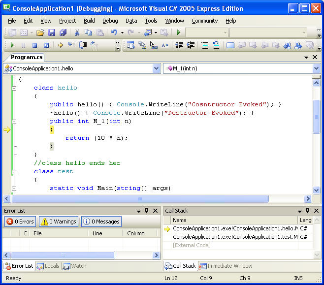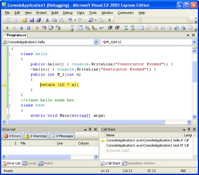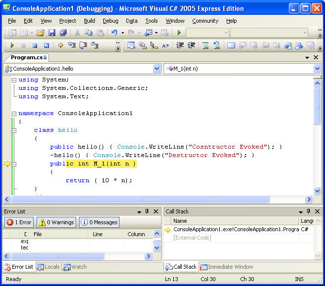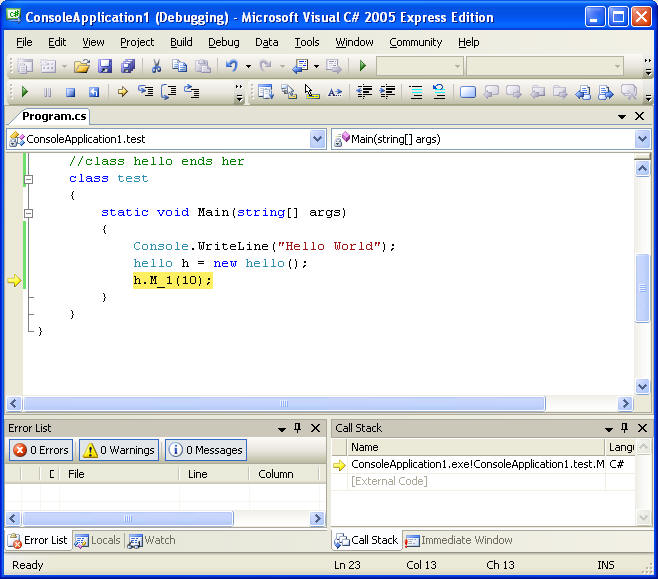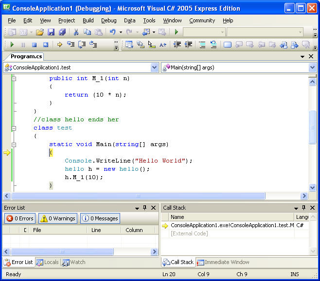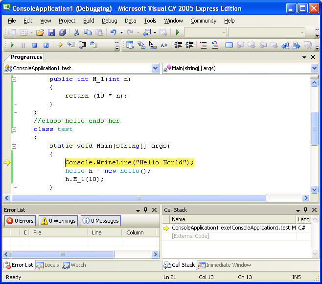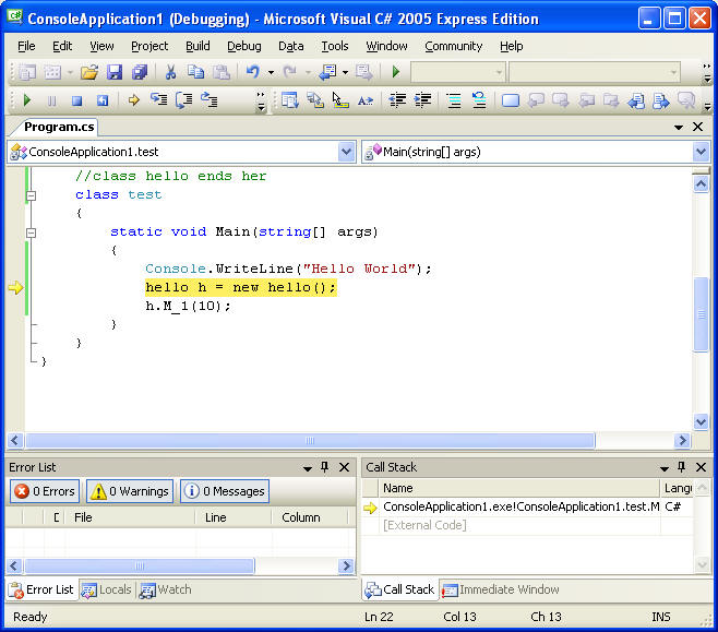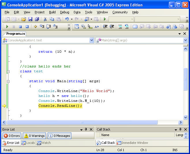 in the following screen shots. There are many debuggers around, the most easy to get and getting started with Microsoft's C# express free edition. But don't limit yourself. Below I am trying to convince you about some cool features about the C# express IDE, as if you are coding visual basic 6.0 or 5. |