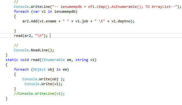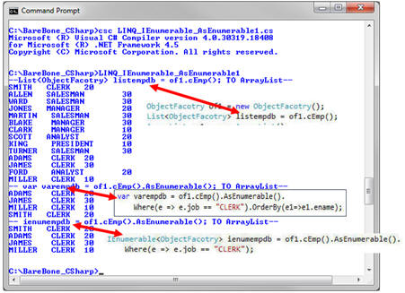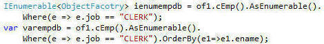 - IEnumerable<ObjectFacotry> ienumempdb = of1.cEmp().AsEnumerable().Where(e