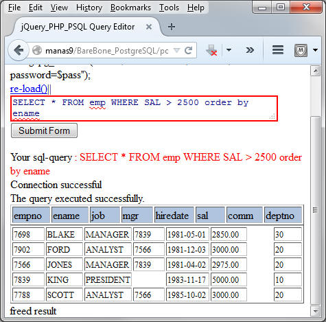 PostgreSQL:(Intranet: http://manas9/BareBone_PostgreSQL/postgresql_doc/psql_php_query1/psql_php_query1.PHP)