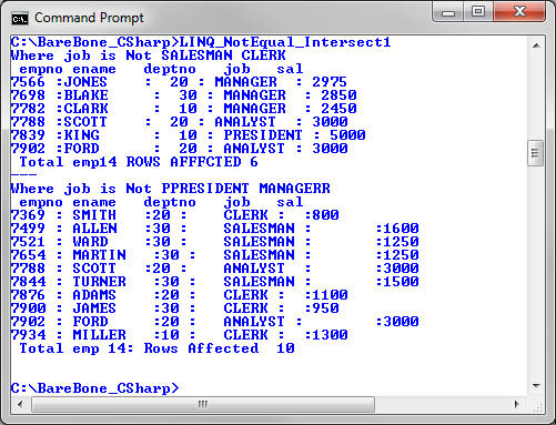 IEnumerable<ObjectFacotry> query2 = empdb.Where(emp => emp.job !=