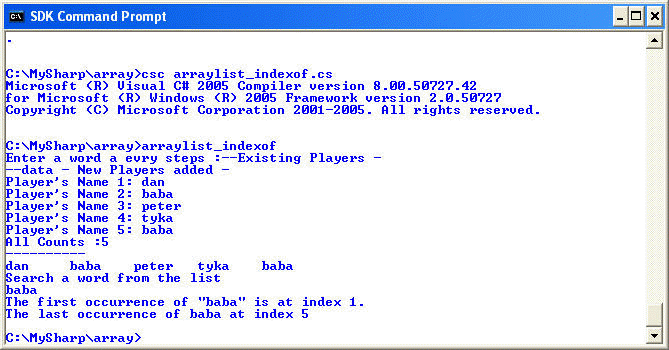 //myIndex = myAL.LastIndexOf( myString, 8 );