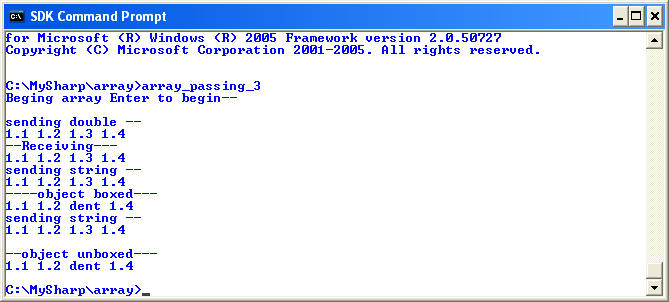 for (int i = 0; i < dd.Length; i++) { Console.Write("{0}{1}", dd[i], " ");