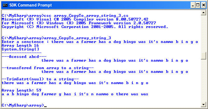 Console.WriteLine("--transfered from array to a string--");