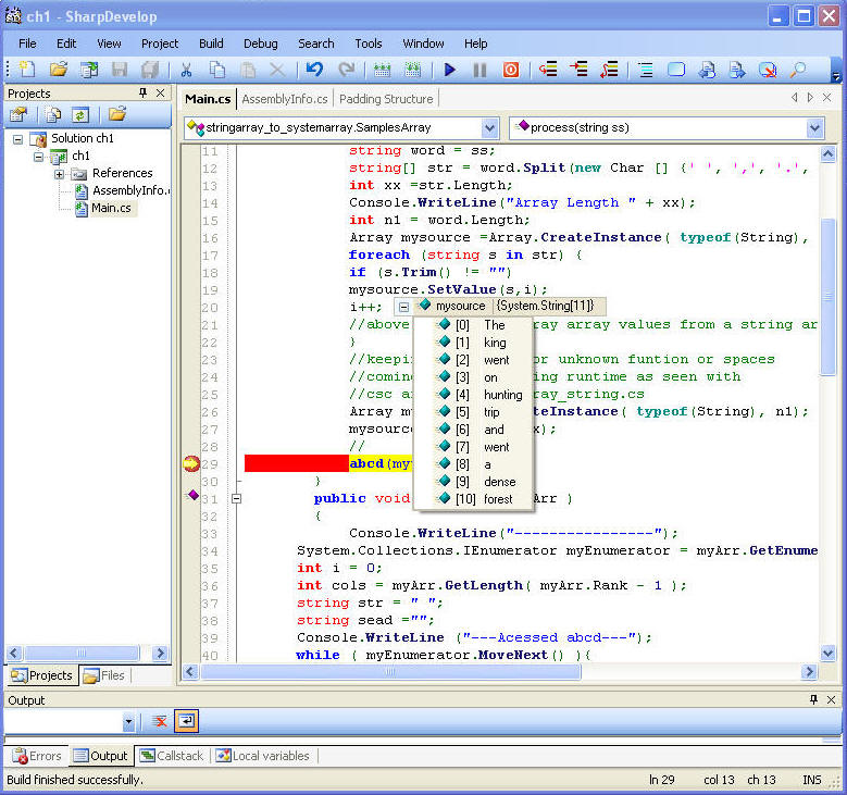 //above we set the Array array values from a string array