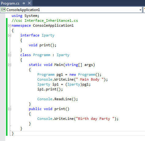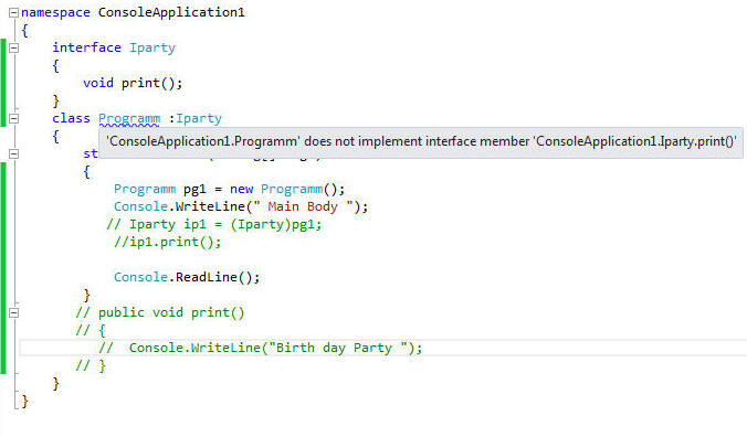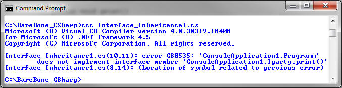 Consider this code snippet : It would generate this error : Error 1 'ConsoleApplication1.Programm' does not implement interface member Command line compilation error: |