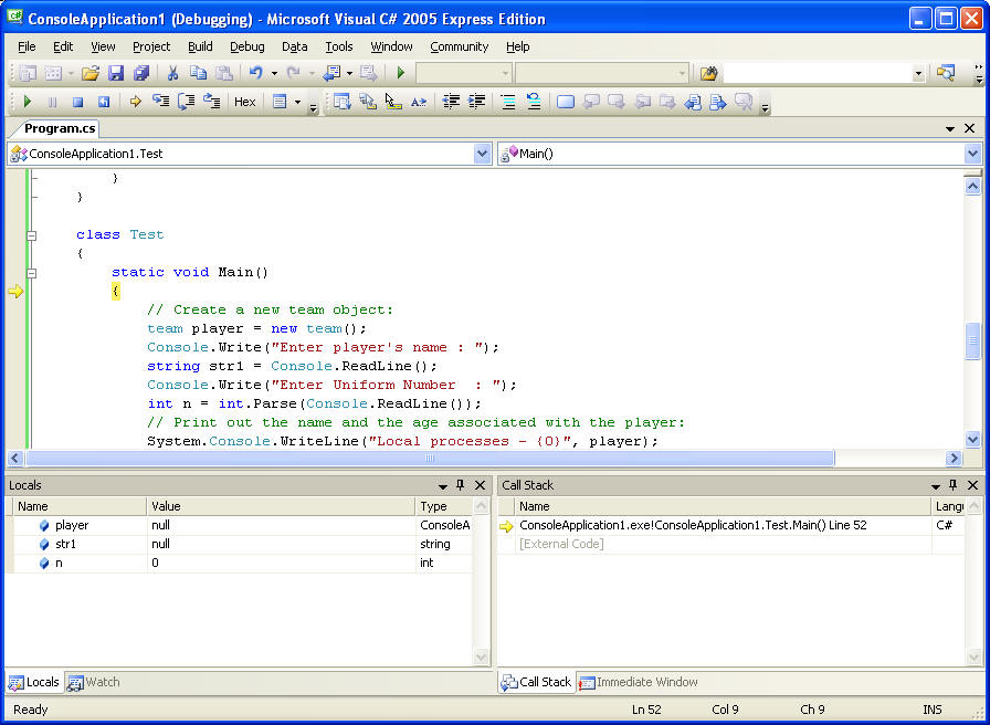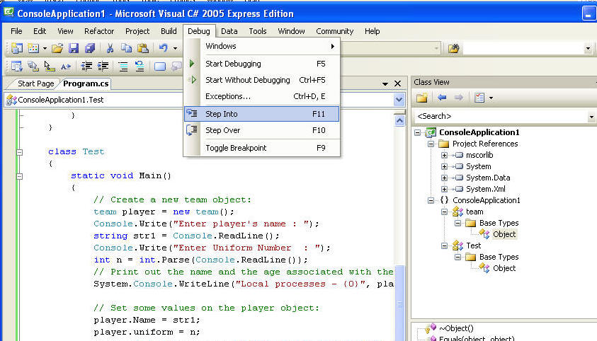 After this point you may have to use break point at read line function, becuase while debugging during Console.ReadLine focus is shifted from console to coding pane of visual C#, and link |