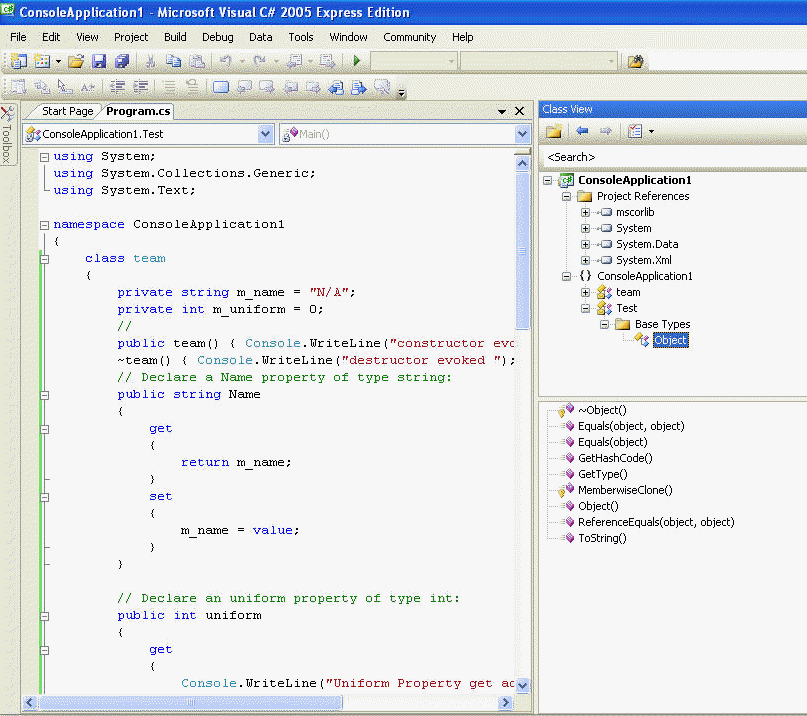 get/read property of the class.