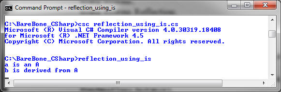 if (b is A) { Console.WriteLine("b is derived from A"); }