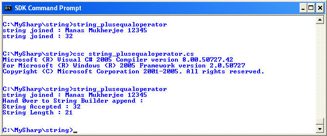 Console.WriteLine("Hand 0ver to String Builder append : " );