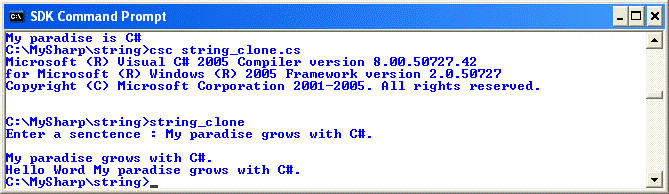 string str1 = String.Concat( "Hello Word " + ss.Clone());
