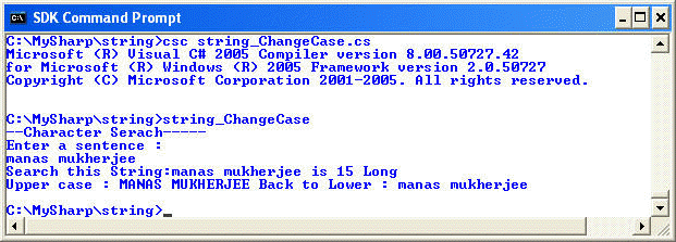 Console.WriteLine("Upper case : " + strSource.ToUpper() + " Back to Lower