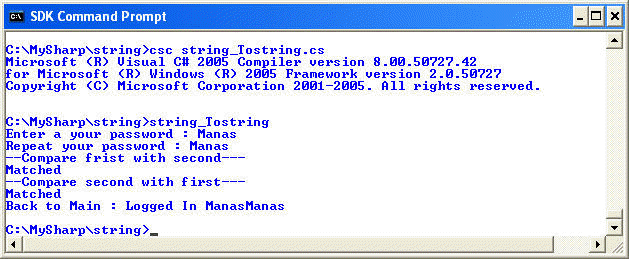 Console.Write("Back to Main : " + my.process(str1, str2));