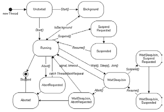 From .NET 2.0, Suspend and Resume have been deprecated, their use discouraged because of the danger inherent in arbitrarily suspending another thread. If a thread holding a lock on a critical resource is suspended, the whole application (or computer) can deadlock. This is far more dangerous than calling Abort which would result in any such locks being released at least theoretically by virtue of code in finally blocks.