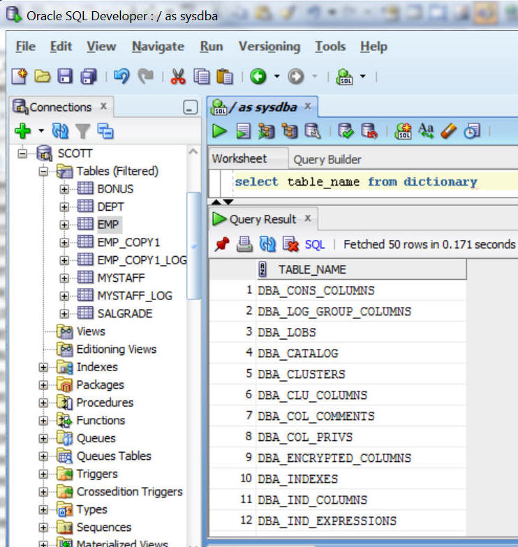 sysdba dictionary |