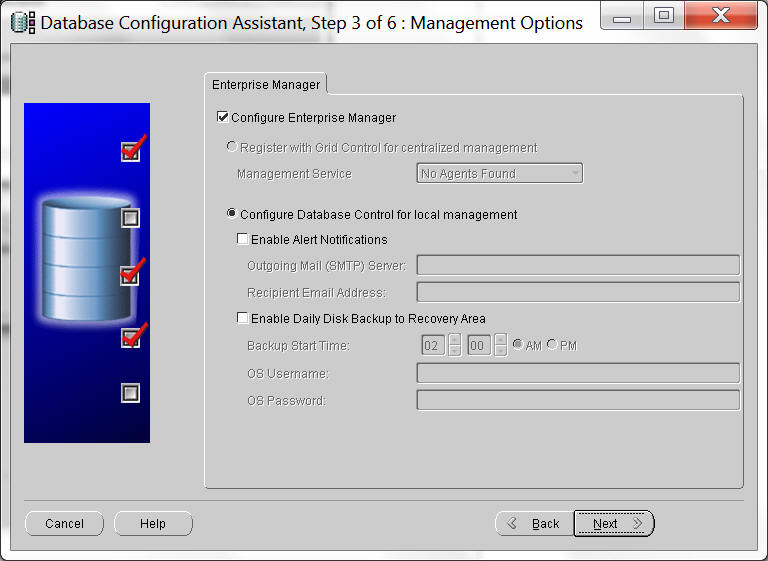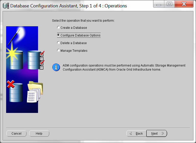 Clock on configuring assistant Select database configuration option |