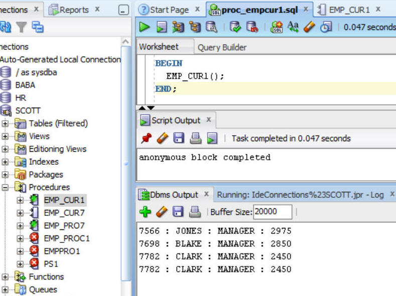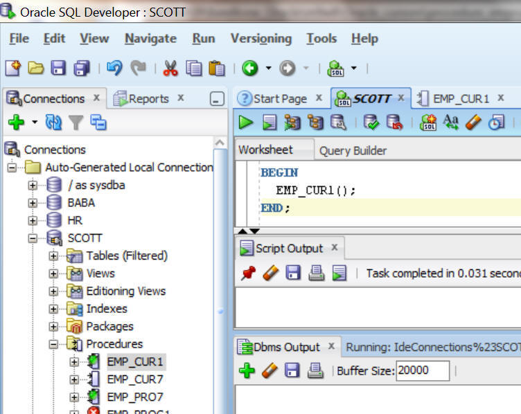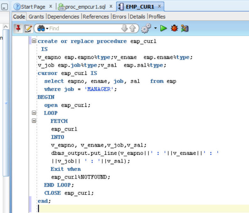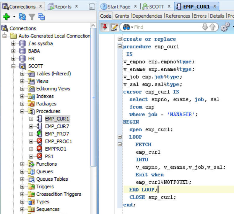 The example below showed how to create a stored procedure. FYI, this procedure did not have any parameters (IN or OUT), whole procedure was created with a single line string. |
