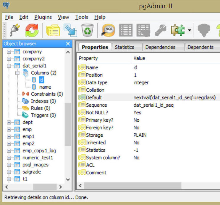 INSERT INTO dat_serial1 (name) values('Jashua');