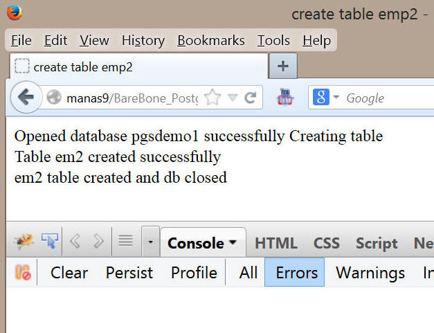 echo "Creating table <br/>";