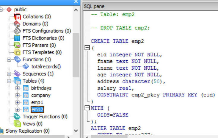 CONSTRAINT emp2_pkey PRIMARY KEY (eid)